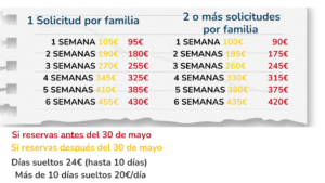 Este verano volvemos a abrir nuestras puertas para ofrecer diversión a los más pequeños en nuestro campamento de verano. Hay descuentos para los más rápidos y para aquellos que reservéis varias plazas. Podéis inscribiros directamente en el siguiente enlace. Las plazas son limitadas, ¡corre que vuelan!